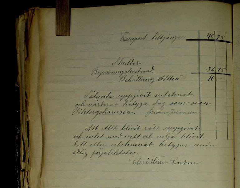 Jag skrev för ett tag sedan att Albert nämndes vid hans farfar Lars Olssons bouppteckning; ”..samt aflidne sonen Nils Magnus Larsson, som efterlämnat en son Nils Johan Albert Nilsson äfven vistandes i Amerika”. Lars gick bort den 8 december 1908, hans hustru Maria Sofia Nilsdotter var 85 år gammal när hon gick bort den 27 januari 1921. Hon levde då på undantag hos dottern Christina. Den här gången var Albert på plats vid bouppteckningen, tillsammans med flera av hans farbröder. En 10-krona var vad som blev kvar.