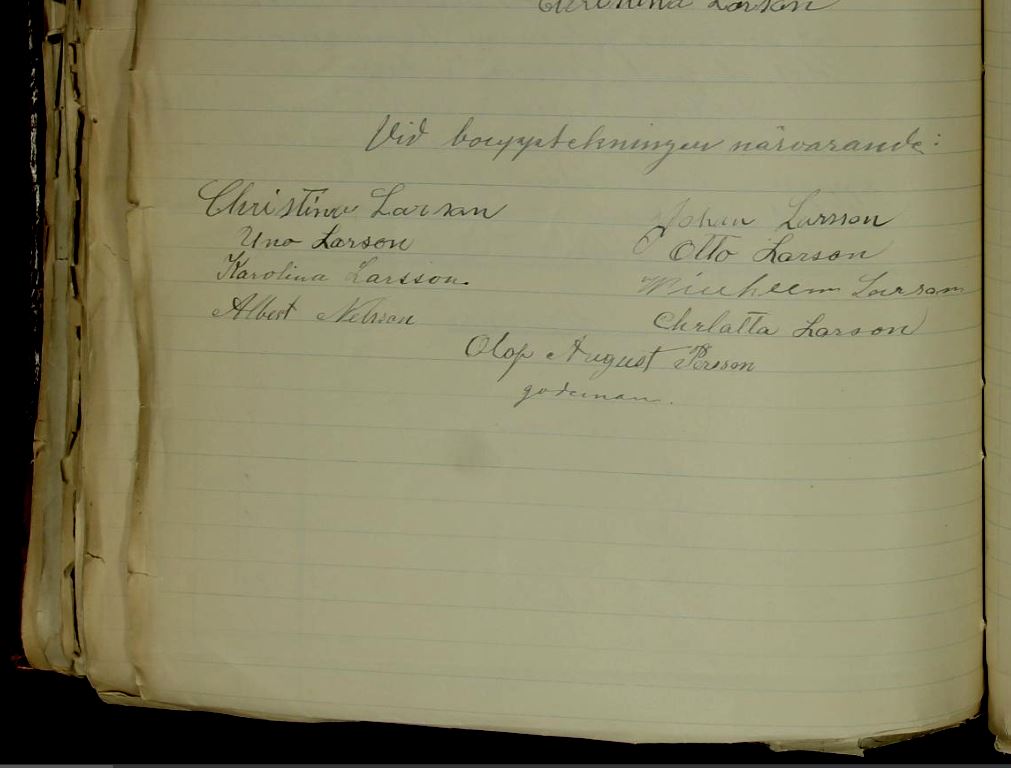 Avlidne Nils Magnus Larsson son Albert Nilsson även tillstädes.