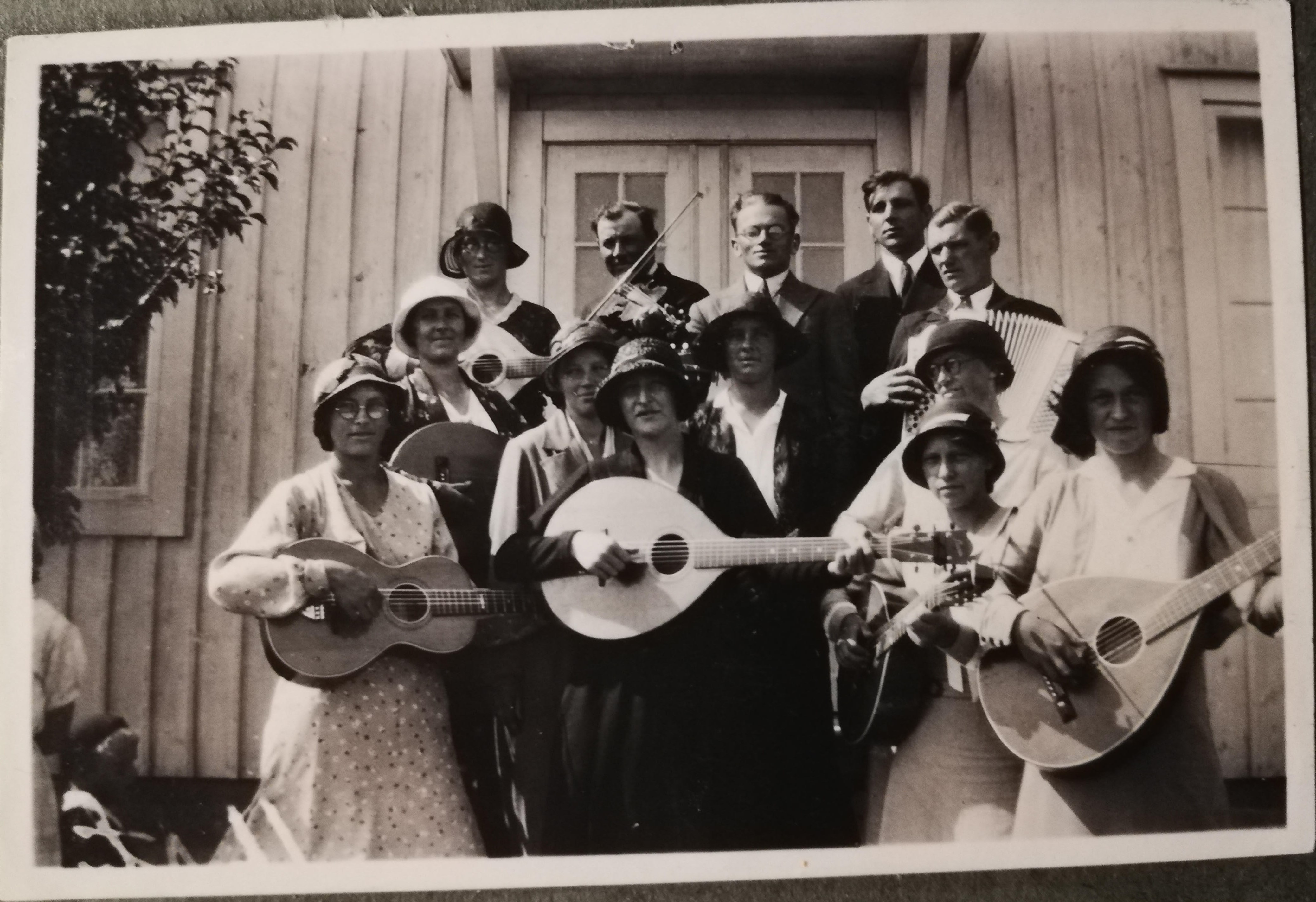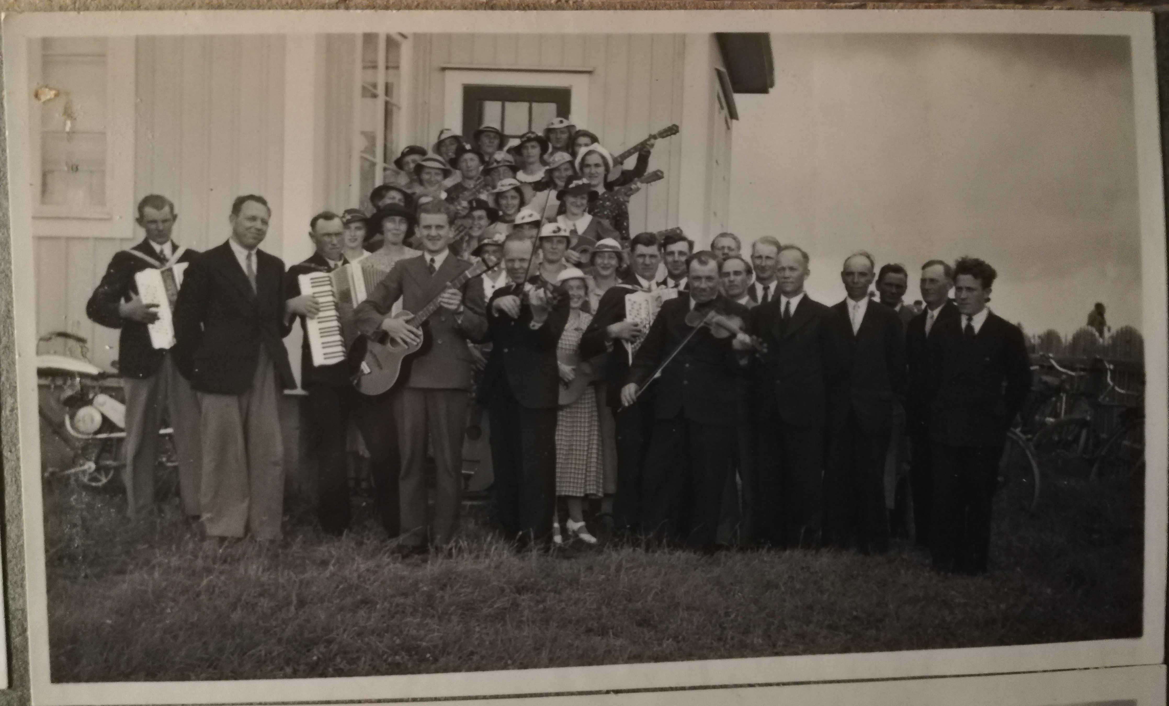 [1] På bilden syns: Gust, Edit, Emrik, Albert, Dagny, Gerda, Edvin, Gerda, Karin, Allan. Samt flera ännu okända.