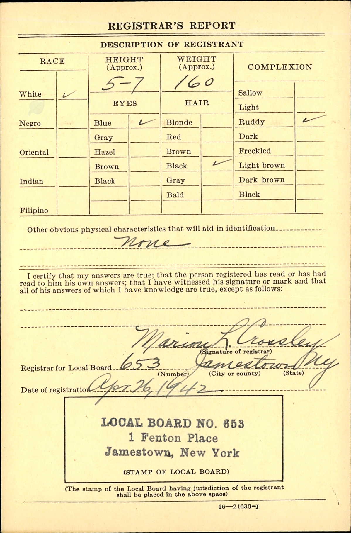 [mm] Edit Gunhild Svensson hade en kusin vid namn Carl August Wallentin Thunberg (1887-1944), som 1907 vid 20 års ålder flyttar till Jamestown, New York. 1942, när han var 54 år gammal, blev han inkallad för tjänstgöring. Att även han blev inkallad, trots sin relativt höga ålder, kom sig nog av att åldersspannet utökades till 18-65 år efter bombningen av Pearl Harbor i december 1941.