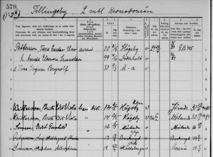 Nedan är sida från husförhörslängden i Tillingby, Målilla: