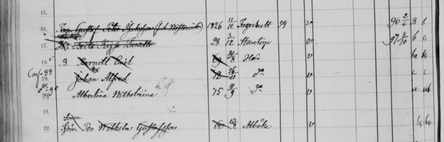 • Johan Alfrid (f. 26 nov 1872 på Kallegutas utmark, d. okänt)