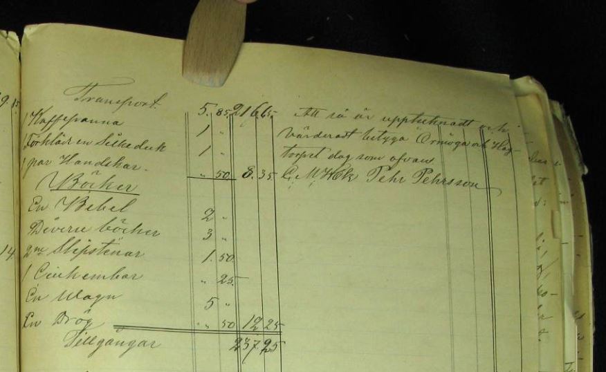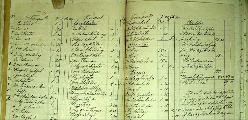 Nedan är Gustaf Petter och Brita Kajsas bouppteckningar. En intressant detalj är att Berndt Emil avsade sig arvet efter modern.
